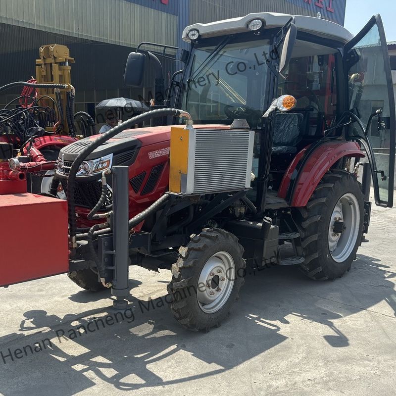 Integratie van de boorinstallatie met de tractor: de boorinstallatie is rechtstreeks op de tractor geïntegreerd en kan zowel als transport- als booreenheid dienen.Het kan een luchtcompressor slepen en boorstangen vervoeren met een eenvoudige driewieler. Het compacte en flexibele ontwerp maakt het mogelijk de machine gemakkelijk te verplaatsen in velden, landelijke wegen en afgelegen gebieden.en alle belangrijke operaties zijn hydraulisch aangedreven. Bij het opheffen van de boorstaaf is geen luchtcompressor nodig, wat het brandstofverbruik en de bedrijfskosten vermindert.Eenvoudig toetsenbord en draadloze bediening:met een vermogen van meer dan 50 WDe gebruiker kan een comfortabele houding kiezen om de machine te bedienen.