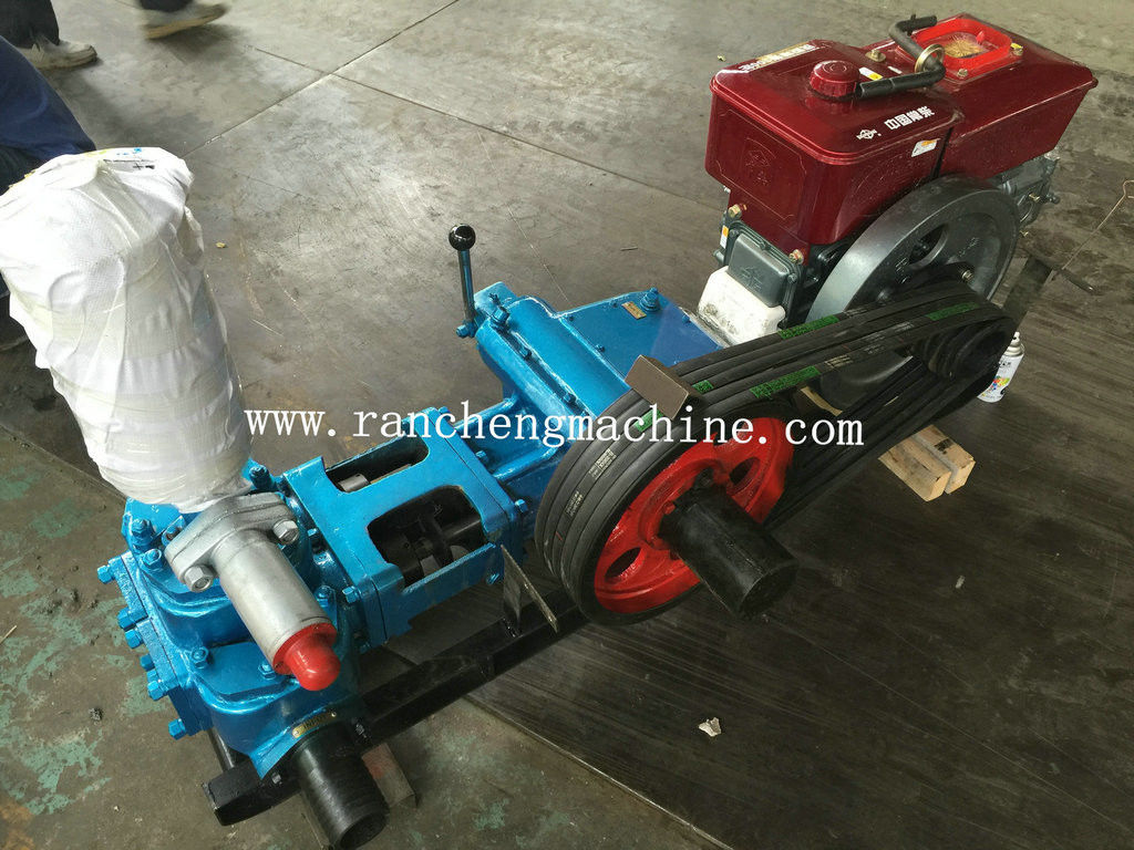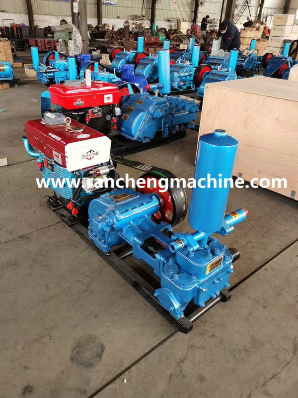 The BW200 diesel engine mud pump is a horizontal, double-cylinder, double-acting reciprocating piston pump, available in crankshaft bushing and bearing types. It is primarily used with 200-meter water well drilling rigs and 600-meter core drilling rigs, and can also be used for cement grouting in large-scale, complex karst formations.